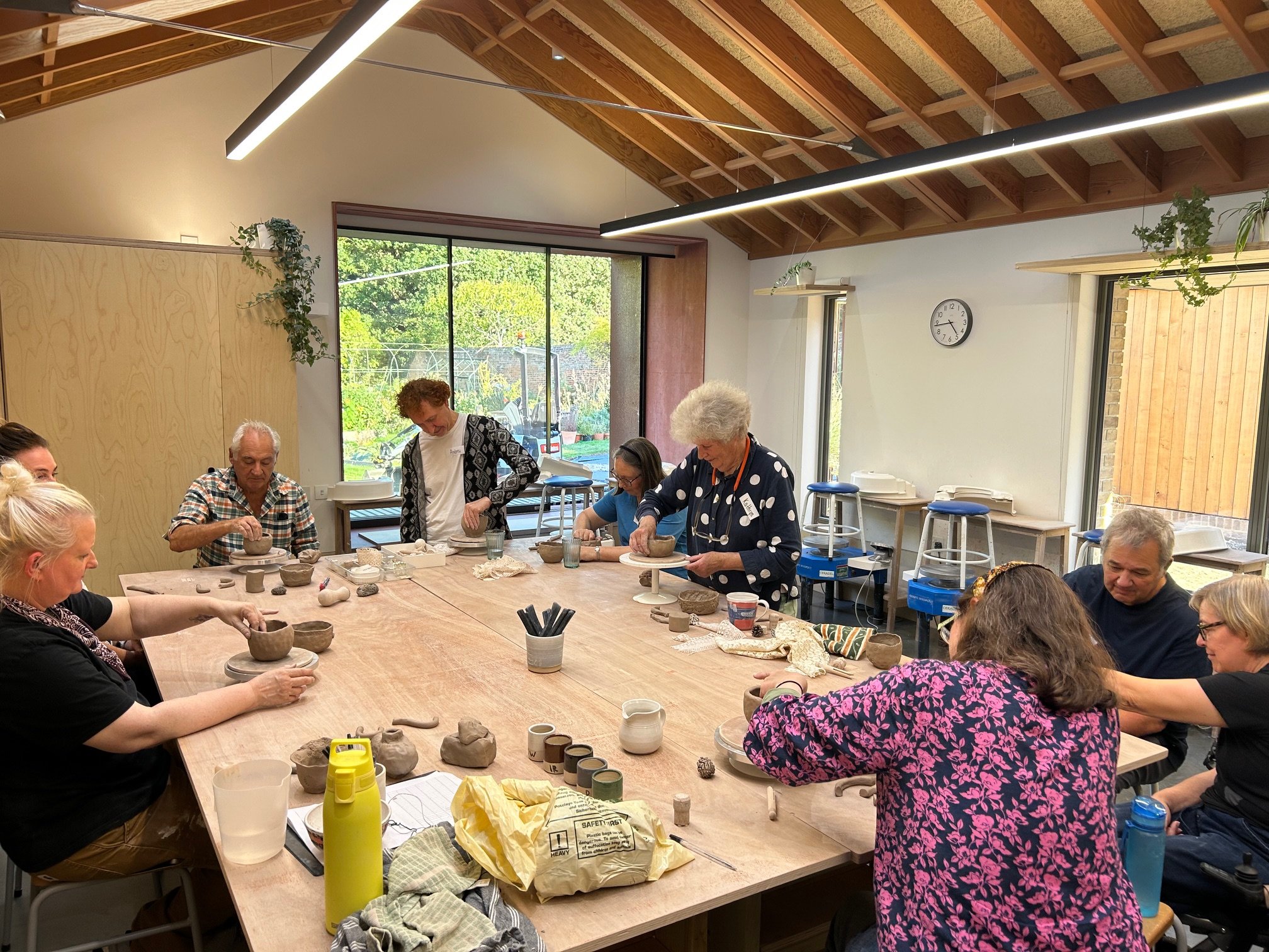 Hand building in the Bell House pottery with members of Aphasia Reconnect