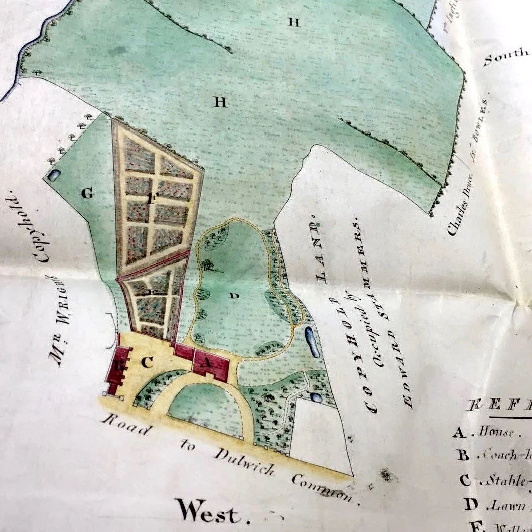 Original deeds showing plan of Bell House courtesy of Dulwich College Archive