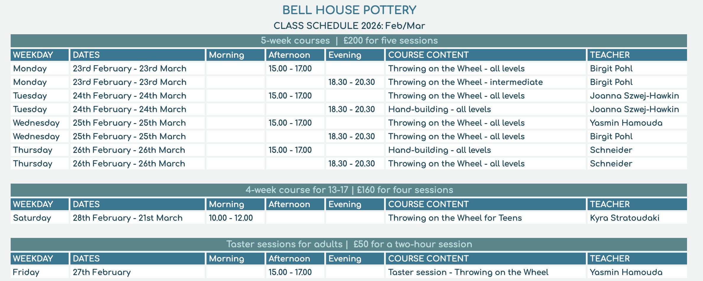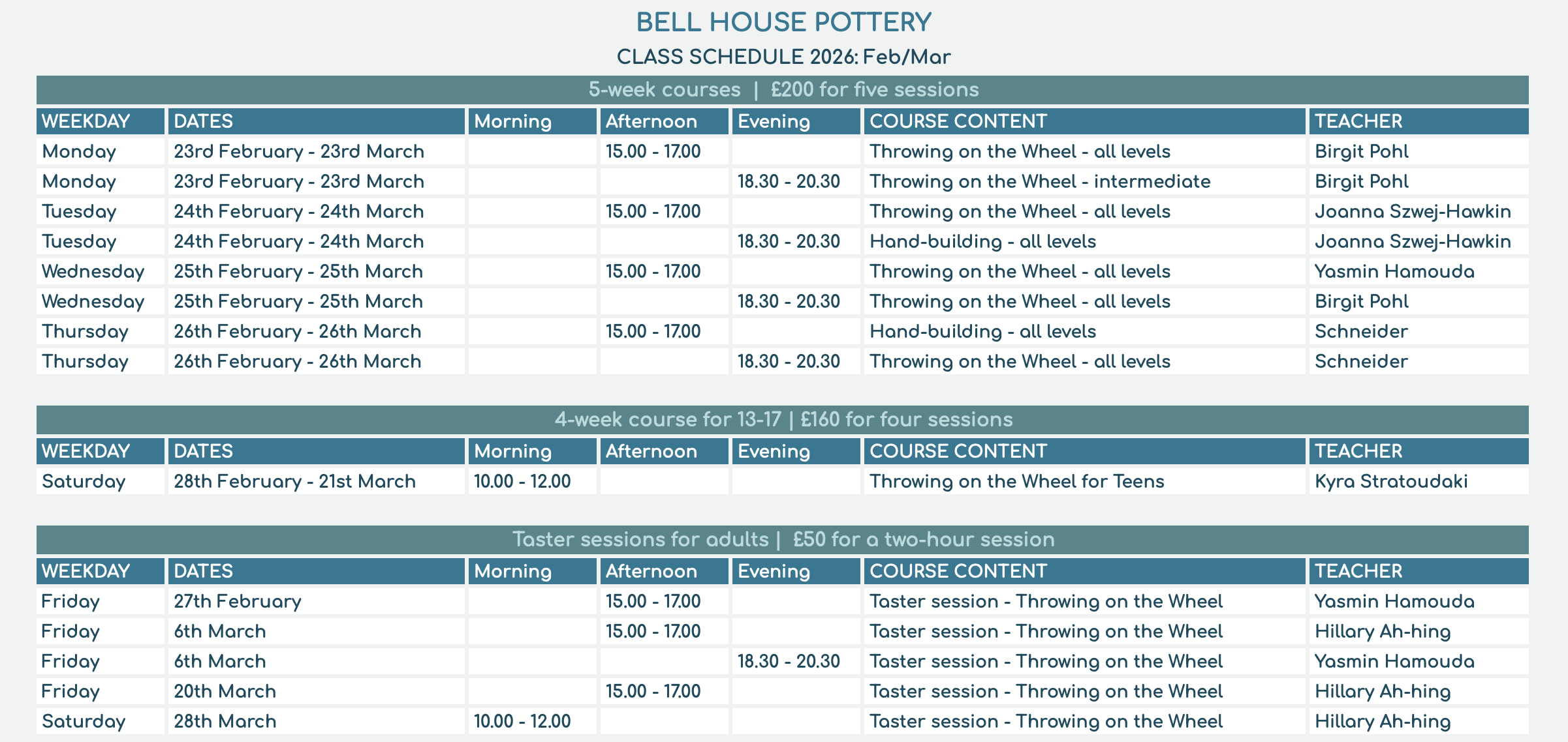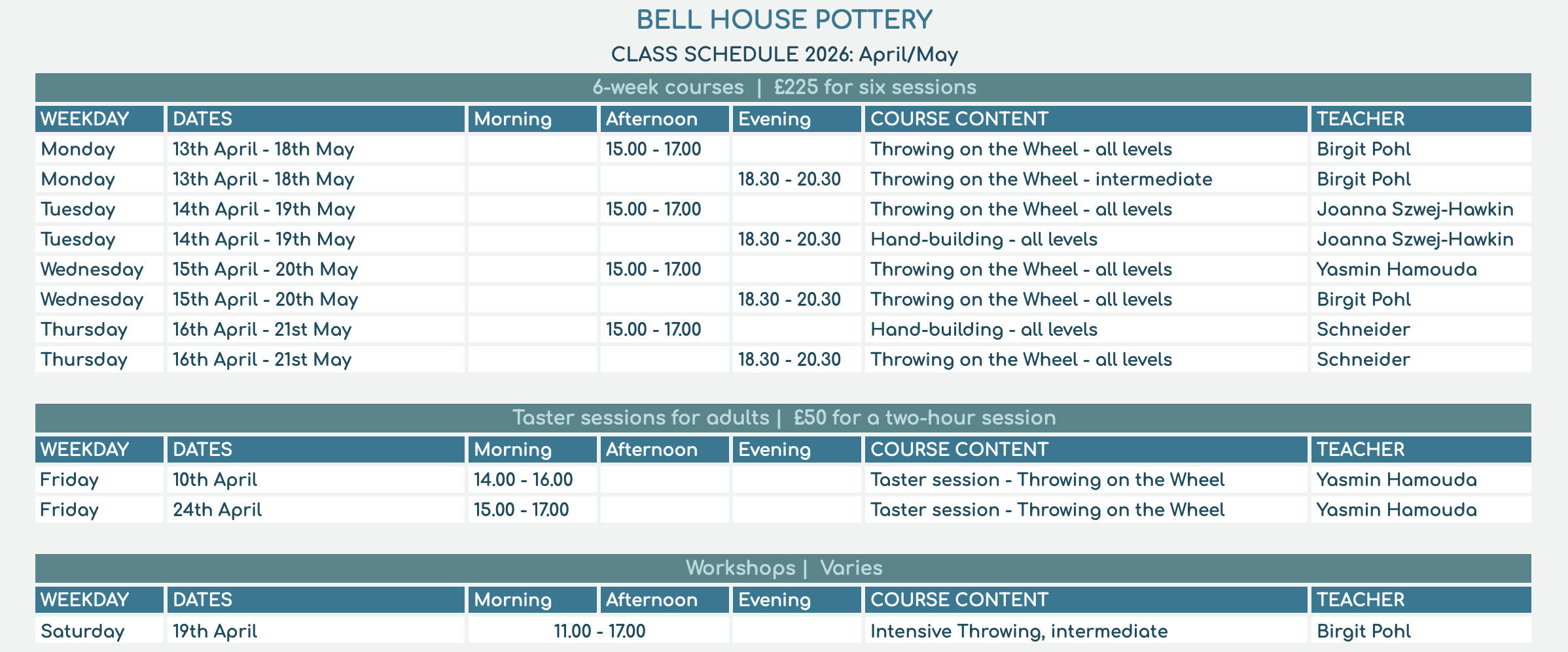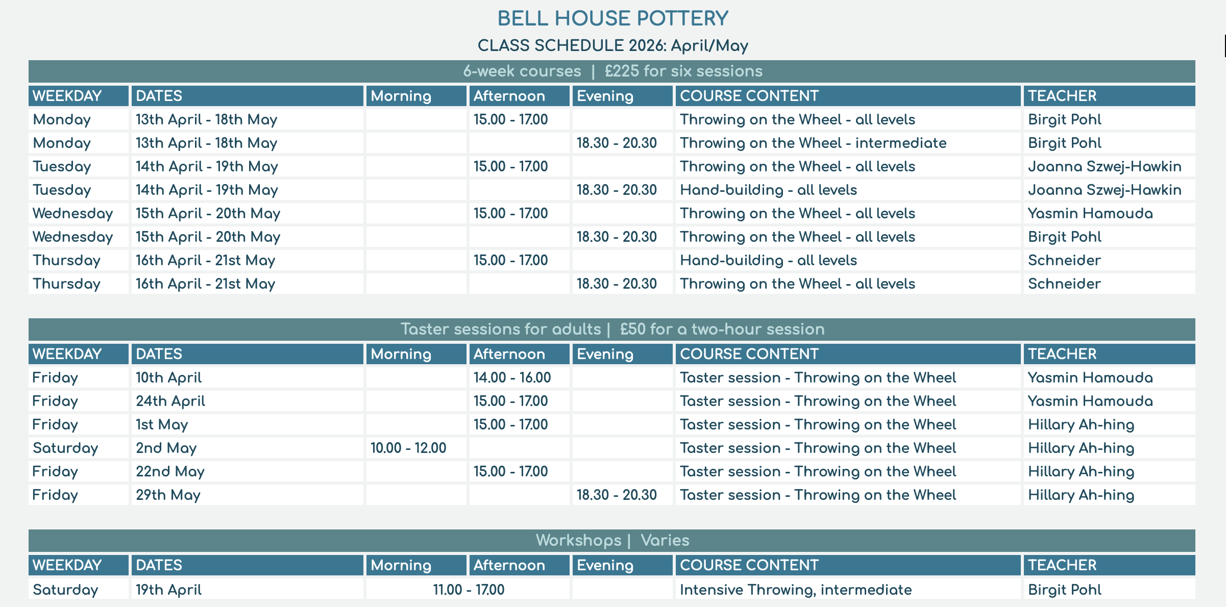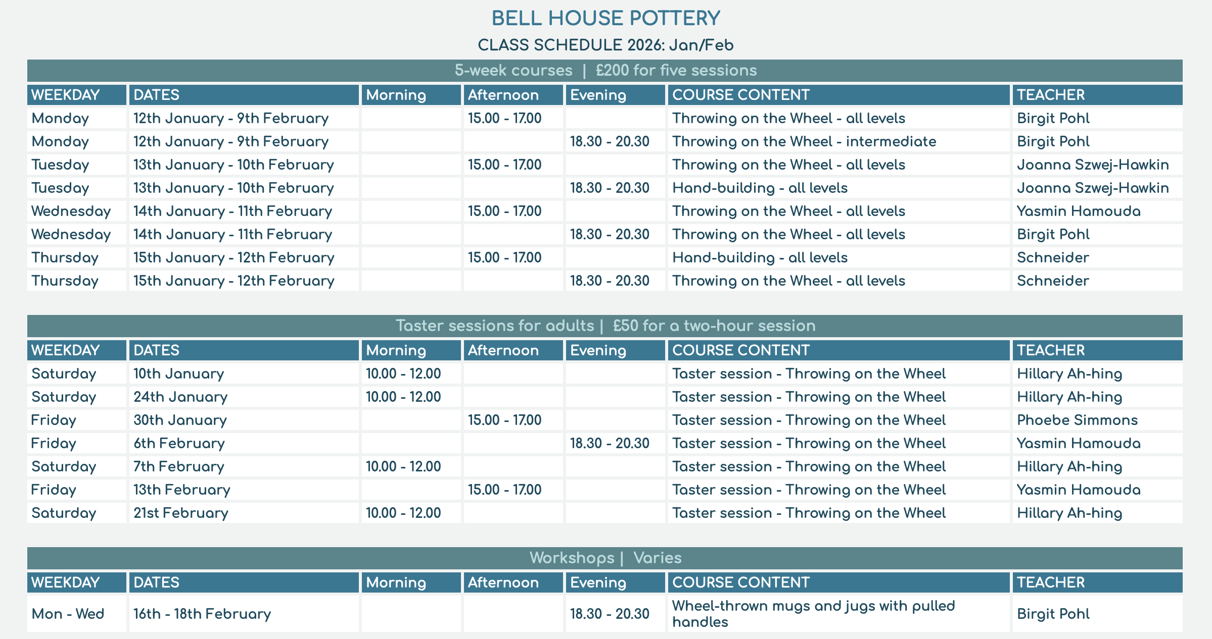 Upcoming Pottery Workshops