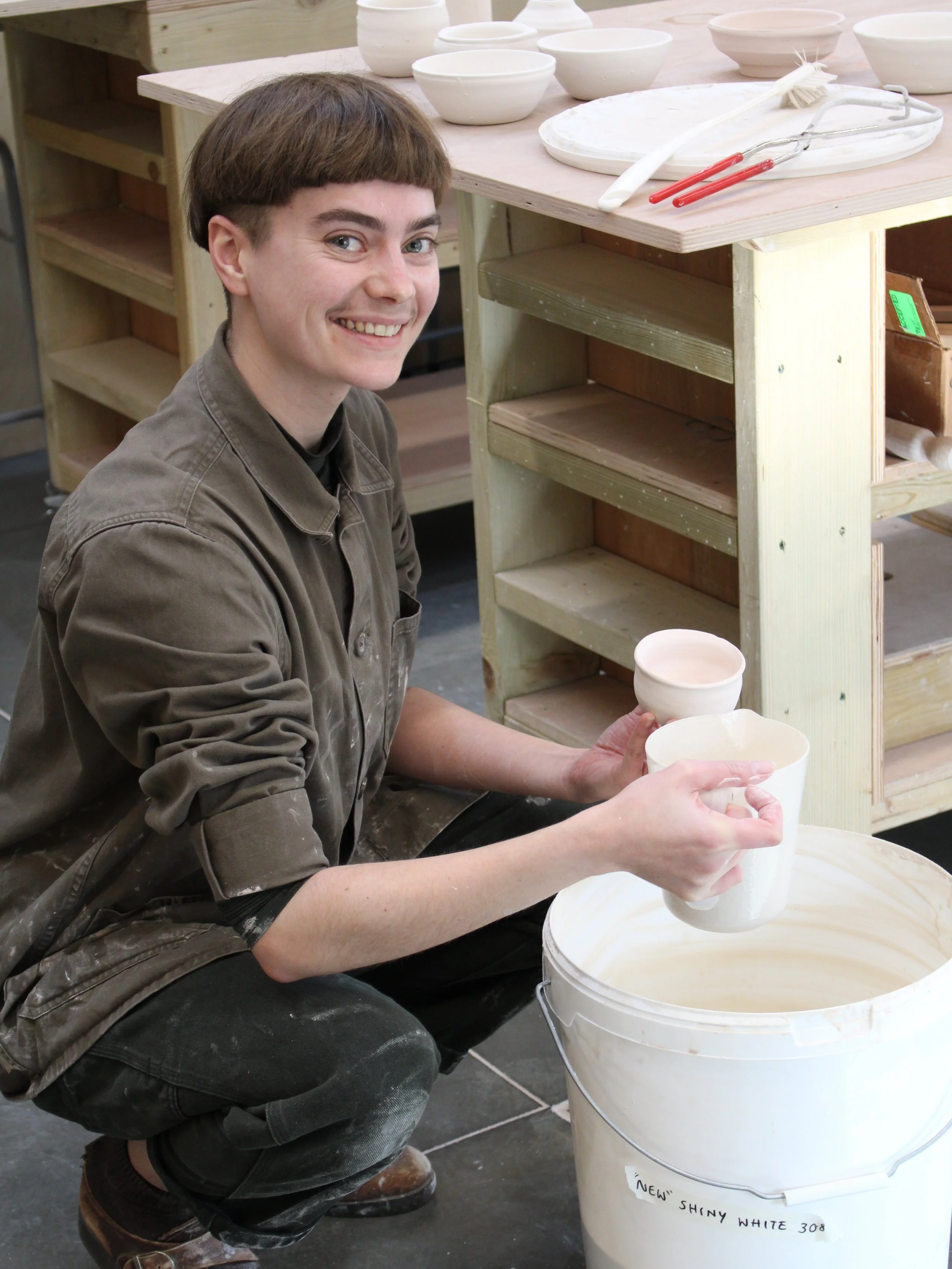 Working closely with the team and ‘Peter the pug mill’, he maintains the Bell House pottery studio and aims to provide beautiful clay for our students.